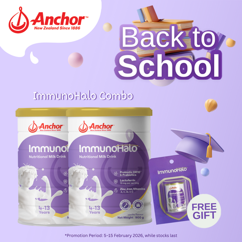 [BACK TO SCHOOL] Anchor ImmunoHalo Kids Nutritional Milk Powder 900g x 2 Can + FREE GIFT